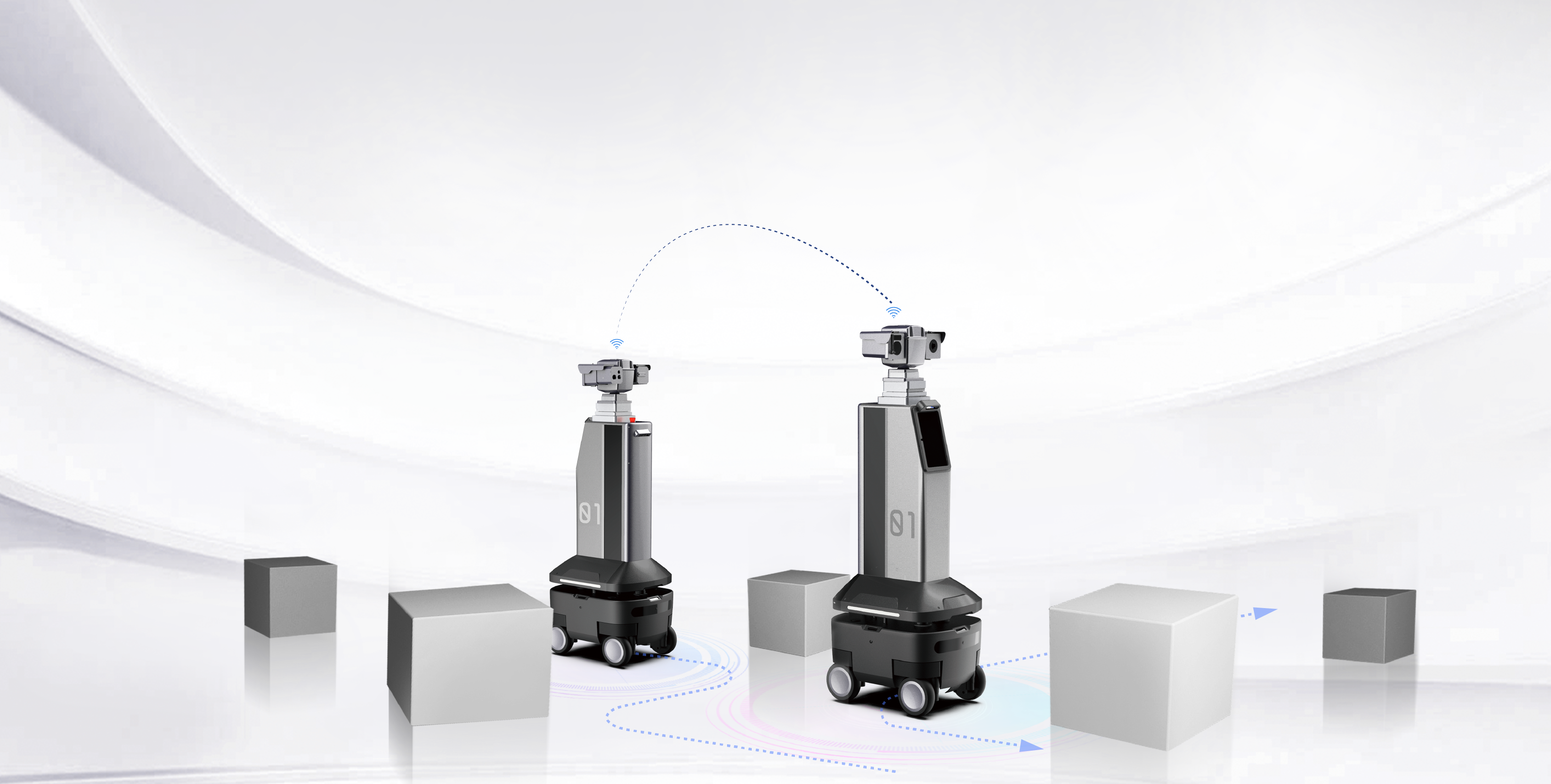 四舵轮底盘可360°全向移动,越障、爬坡、过沟能力超强;机身设计小巧,适合狭窄、复杂环境